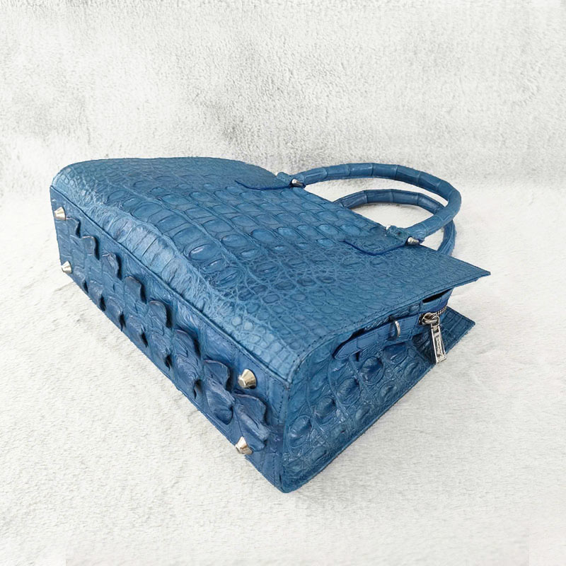 Túi xách da cá sấu Hoa Cà 7134 được chế tác từ toàn bộ phần gai lưng cá sấu – nơi mang kết cấu vân mạnh mẽ, nổi khối và hiếm bậc nhất. Kết hợp với gam xanh navy trầm sang, chiếc túi không chỉ là phụ kiện thời trang mà còn là một tác phẩm nghệ thuật thể hiện vị thế và phong thái của người sở hữu.